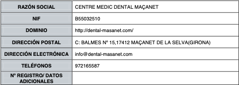 Presentación de un escrito a la dirección C: BALMES No 15,17412 MAÇANET DE LA SELVA(GIRONA) (a la atención de CENTRE MEDIC DENTAL MAÇANET) o bien a través de correo electrónico a por correo electrónico a info@dental-masanet.com .